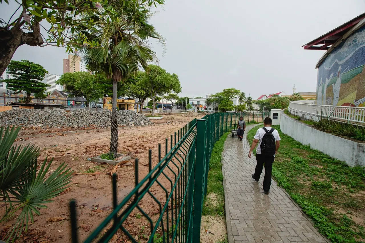 O projeto citado inclui a reforma da Praça Almirante Saldanha, mas vai além e prevê ações que vão da avenida Monsenhor Tabosa até o Pavilhão Atlântico, na comunidade do Poço da Draga.