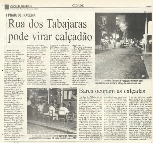 Na mesma matéria, é evidenciado que, apesar de ser o reduto preferido dos turistas, a Rua dos Tabajaras era alvo de “desrespeito”. “Quem passa por lá percebe facilmente mesas e cadeiras de alguns restaurantes e bares ocupando calçadas, sem deixar outra opção para o pedestre a não ser dividir os espaços da via pública com os veículos”.