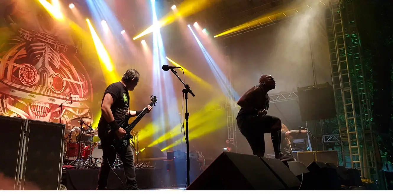 A festa seguiu com os mundialmente famosos Sepultura, headliners da noite. Paulo Jr. (baixo), Andreas Kisser (guitarra e voz), Derrick Green (voz) e Eloy Casagrande (bateria) chegaram a Fortaleza com a turnê do disco “Machine Messiah” (2017) debaixo do braço. Crias desse material como “I Am the Enemy” e “Phantom Self” estiveram presentes. O primeiro salto nostálgico aconteceu com “Territory” e “Inner Self”.