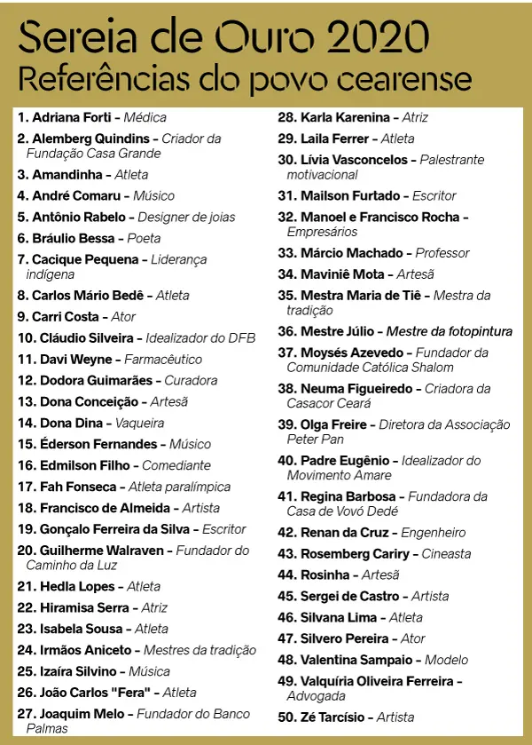 A arte e o engenho encontraram no Ceará um terreno fértil. Entre os nomes destacados pela campanha do Sereia de Ouro, abundam os representantes do território criativo. Tradição, invenção e partilha são elementos comuns daqueles que fazem da cultura cearense uma referência.
