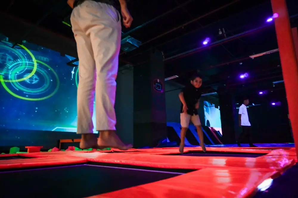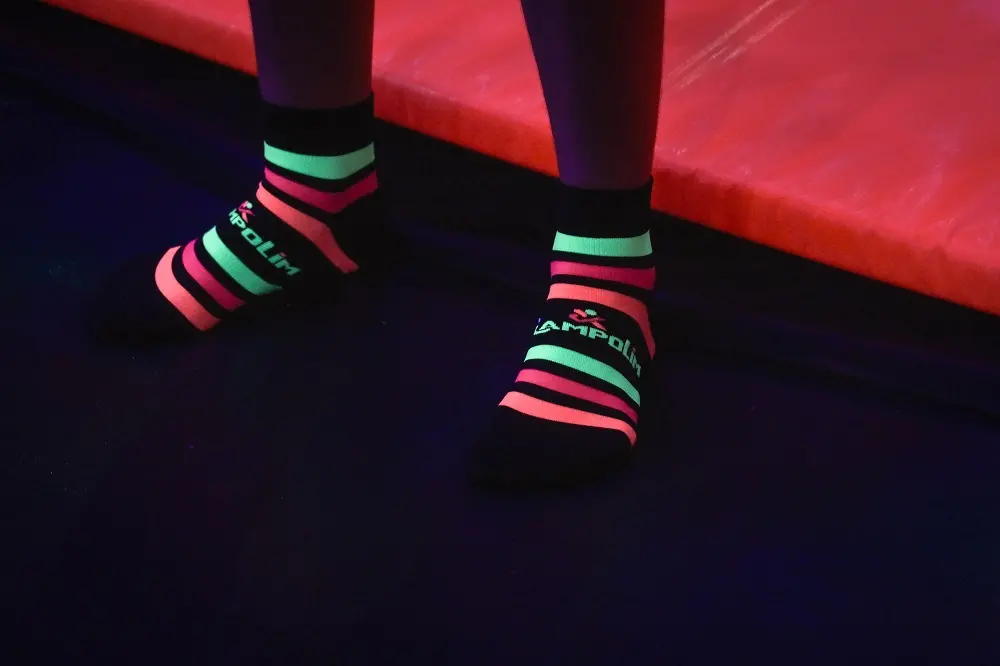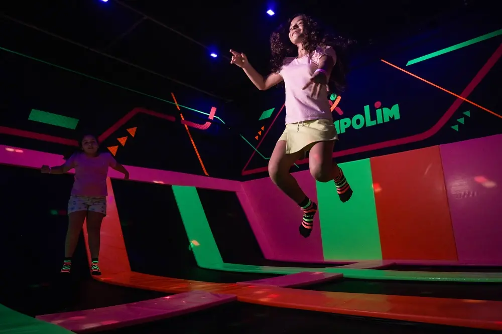 Crianças a partir de dois anos já podem brincar e não há limite máximo de idade. Uma das partes mais legais é ter a chance de, logo na entrada do equipamento, adquirir uma meia antiderrapante toda colorida e com toques de neon, Além de super bonita, ela favorece para que os pés fiquem mais seguros na hora de pular. O uso do item é obrigatório e, caso você já tenha uma em casa, pode vim com ela.