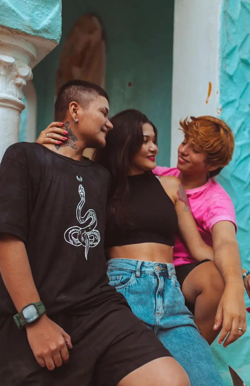 “Por sermos um trisal, sempre acham que vai ‘caber mais um’, quando não é verdade”, sublinham. “Os benefícios são vários. Um deles é ser amada(o) por dois e amar dois também. Quando um não pode fazer algo do dia a dia, o outro provavelmente vai poder. Sempre vai ter um para apaziguar nas DRs, as tarefas de casa se tornam mais fáceis, a conta no restaurante também”, brincam. “São inúmeros”.