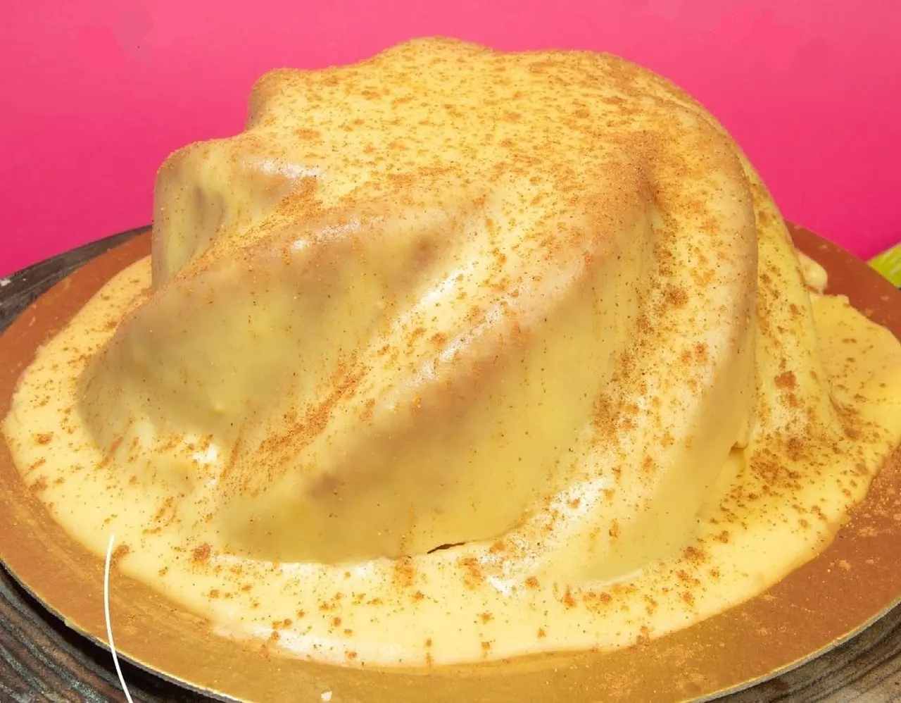 A Doceville uniu duas delícias com a receita do bolo fofo amanteigado tradicional da confeitaria com uma cobertura de calda de canjica e finalizado com um toque de canela.