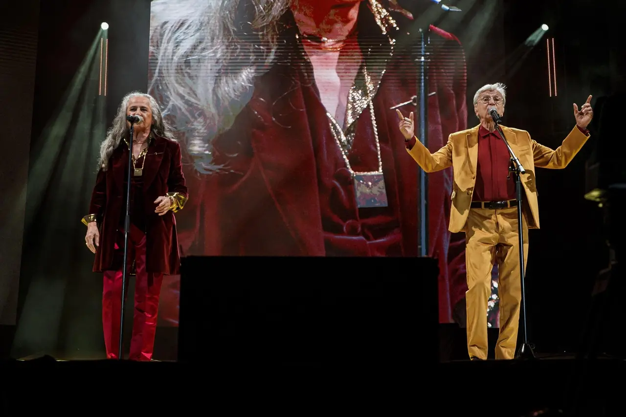 Legenda: Caetano Velosos divide o palco com a irmã Maria Bethânia