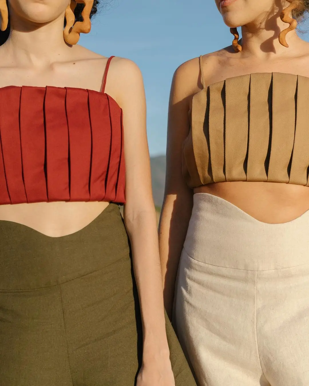 Além disso, Ana Beatriz trabalha com upcycling, reaproveitando resíduos que seriam descartados para produzir novas peças. O cropped Broto, por exemplo, foi feito com tecidos que seriam jogados no lixo, assim como o top Sol que tem recortes feitos com linho e brim.