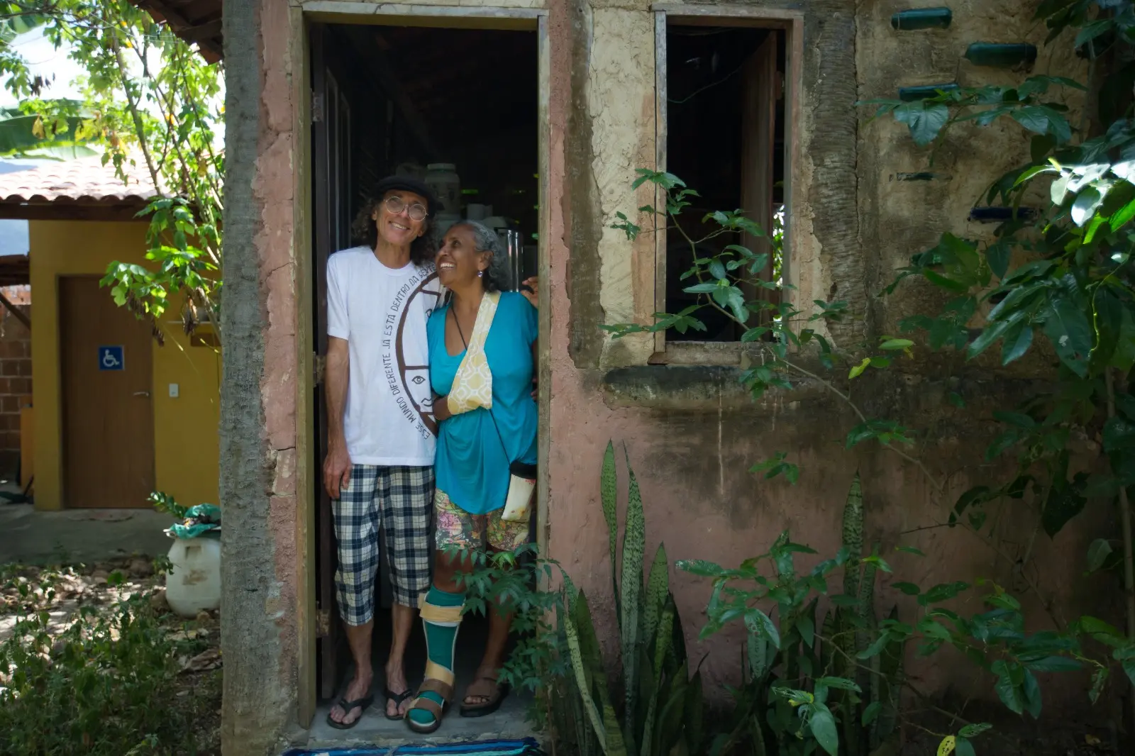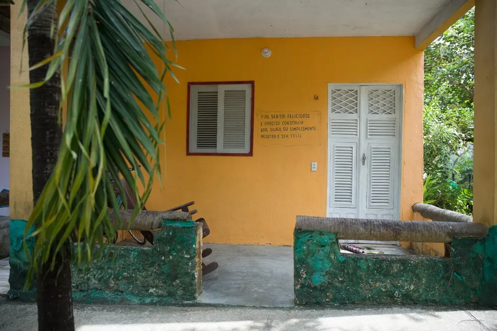 No momento, 11 pessoas ocupam a propriedade. De forma específica, o lar de Reginaldo e da esposa, Ana Lourdes de Freitas, é dividido em seis chalés. Enquanto o casal reside em um, o restante fica disponível para o público. É uma estrutura super simpática, com amarelo convidativo e cheia de cantinhos inspiradores – as varandas, os quartos, os batentes.