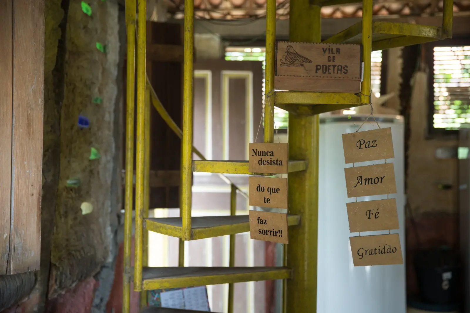 Fora desse âmbito privado, a Vila de Poetas ainda dispõe de biblioteca, quadra esportiva, parquinho para crianças, horta e a sombra de várias árvores – tudo de livre acesso e adornado com criatividade. “É muito comum chegar pessoas na Vila sem boa condição econômica. Nosso único critério é receber gente que quer fazer uma mudança na vida”.