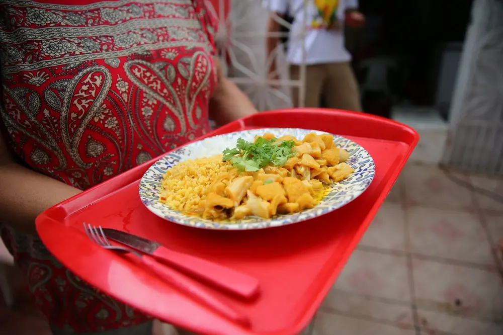 O entra e sai de público justifica a fama do recanto. Moqueca de arraia, vatapá, desfiadinho de carne do sol, pastéis, bolo, caldo, água, cerveja e whisky circulam de mão em mão. Há banheiro disponível também. “A gente tem que aproveitar, meu filho”, dispara. “Minha equipe são 15 pessoas, entre filhos, sobrinhos e outros parentes. Todo mundo trabalha”.