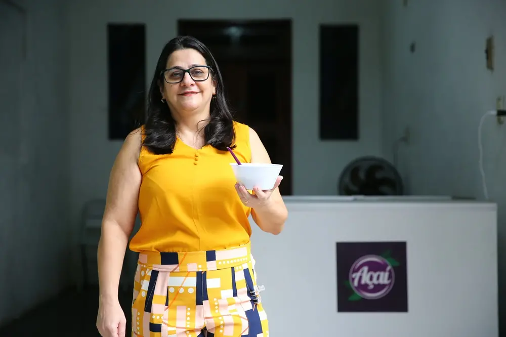“Meu esposo também tem comércio, então ficamos mais voltados ao trabalho. Como esse espaço da casa ficou ocioso, surgiu a oportunidade. Fica todo mundo junto – minha filha, meu genro e mais gente – para vender o açaí. O dinheiro vem para quitar muitas dívidas”, gargalha, baixinho. “Destino para ele sempre tem. Antes de conseguir, ele já foi gasto”.