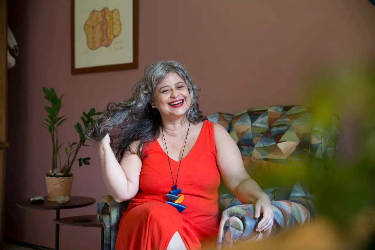 “Quando eu estava na casa dos 40, eu estava muito mais desorganizada interna e fisicamente do que estou agora. Me sinto com uma vitalidade muito grande, expandindo meus conhecimentos, mergulhando no autoconhecimento, eu me considero hoje a minha melhor amiga, só consigo ver pontos positivos”, declara.